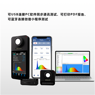 植物燈測量相關參數:相關色溫Tc(K)、黑體偏離Duv光照度E(lx)、燭光E(Fc)輻射照度Ee(W/m2)色品坐標(x,y)、(u,v)、(u′,v′)相對光譜功率分布P(λ)顯色指數Ra,Ri(i=1~15)色容差SDCM(麥克亞當橢圓、矩形框以及CIEu’v’圓)主波長、...
