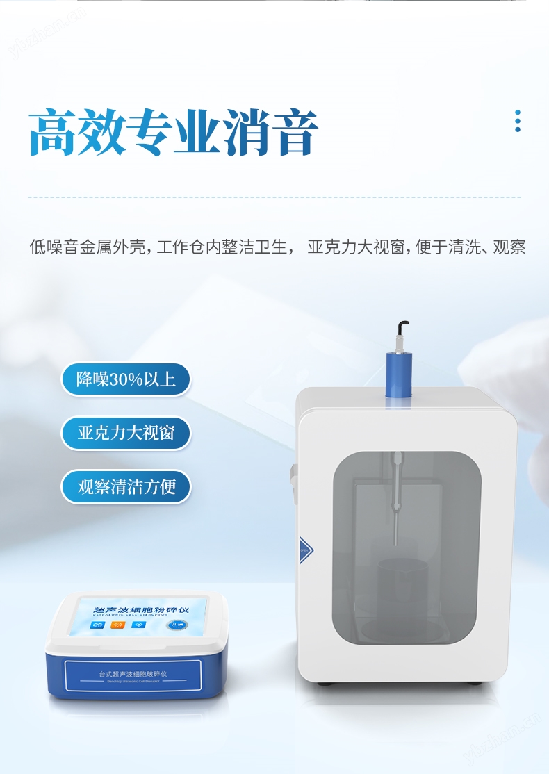 超聲波破碎儀是一種利用強超聲在液體中產生空化效應,對物質進行超聲處理的多功能、多用途的儀器,能用于動植物組織、細胞、細菌、芽胞菌種的破碎,同時可用來乳化、分離、分散、勻化、提取、脫氣、清洗及加速化學反應等等。優云譜自研自產的超聲波破碎儀,將隔音箱融入到主機中形成一體化。功能齊全、外觀新穎、性能可靠。儀器采用大屏液晶顯示;中央微機集中控制,超聲輸出、間隙時間、超聲功率,樣品溫度監測顯示,頻率自動跟蹤,故障自動報警等功能。適用于生物化學、微生物學、藥物化學、表面化學、物理學、動物學、農學、醫學、制藥等領域的教學、科研及生產。