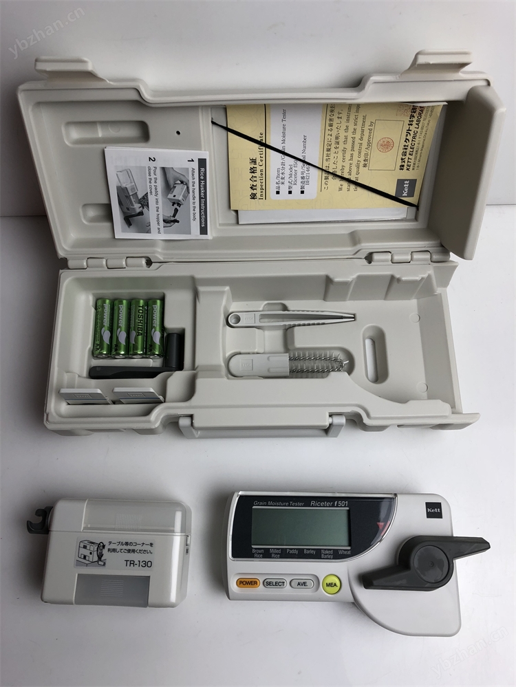 附屬部件:(稻谷剝離器)脫谷器1個(gè)、測(cè)量樣品皿2個(gè)、刷子1只、4個(gè)5號(hào)干電池、勺型鑷子1個(gè),便攜箱1個(gè)、使 用說(shuō)明書。